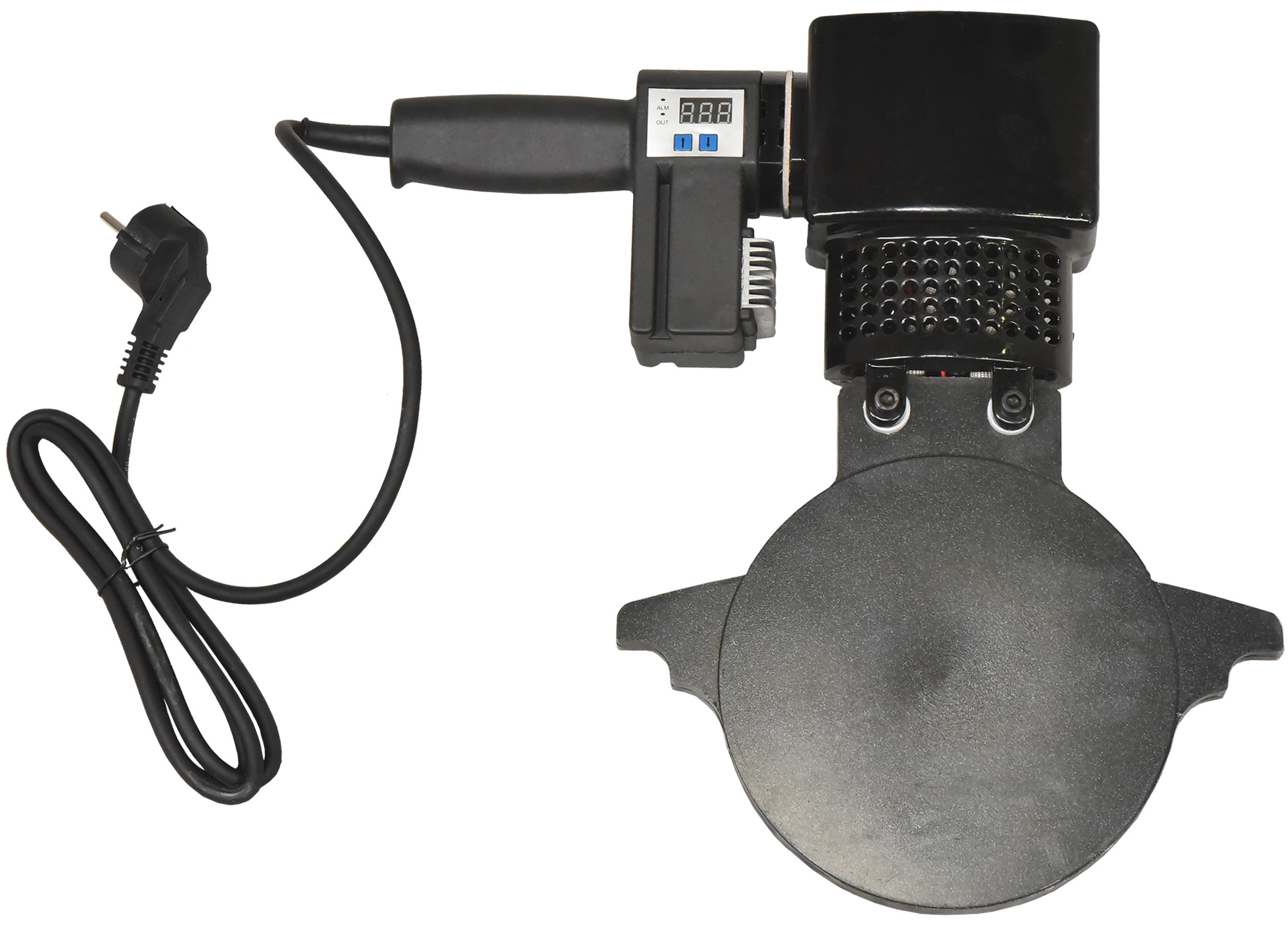 Нагреватель имеет антипригарное тефлоновое покрытие, уменьшающее налипание полимера и облегчающее обслуживание. Электронный терморегулятор с цифровой индикацией обеспечивает точную установку и контроль температуры, что важно при соблюдении режимов сварки для различных марок материалов.