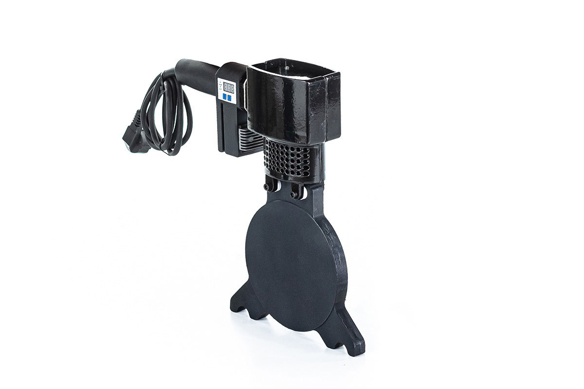 Машина комплектуется центратором с двумя откидными зажимами и фиксатором, что облегчает установку и позиционирование труб. Центратор выполнен из качественного сплава с рёбрами жёсткости, обеспечивающими большой запас прочности и возможность работы с трубами с любым показателем SDR без деформации. Нагревательный элемент с антипригарным тефлоновым покрытием обеспечивает равномерный прогрев торцов, а электронная регулировка температуры осуществляется непосредственно на нагревателе. Торцеватель с электроприводом подготавливает торцы труб к сварке, обеспечивая ровную и перпендикулярную поверхность.