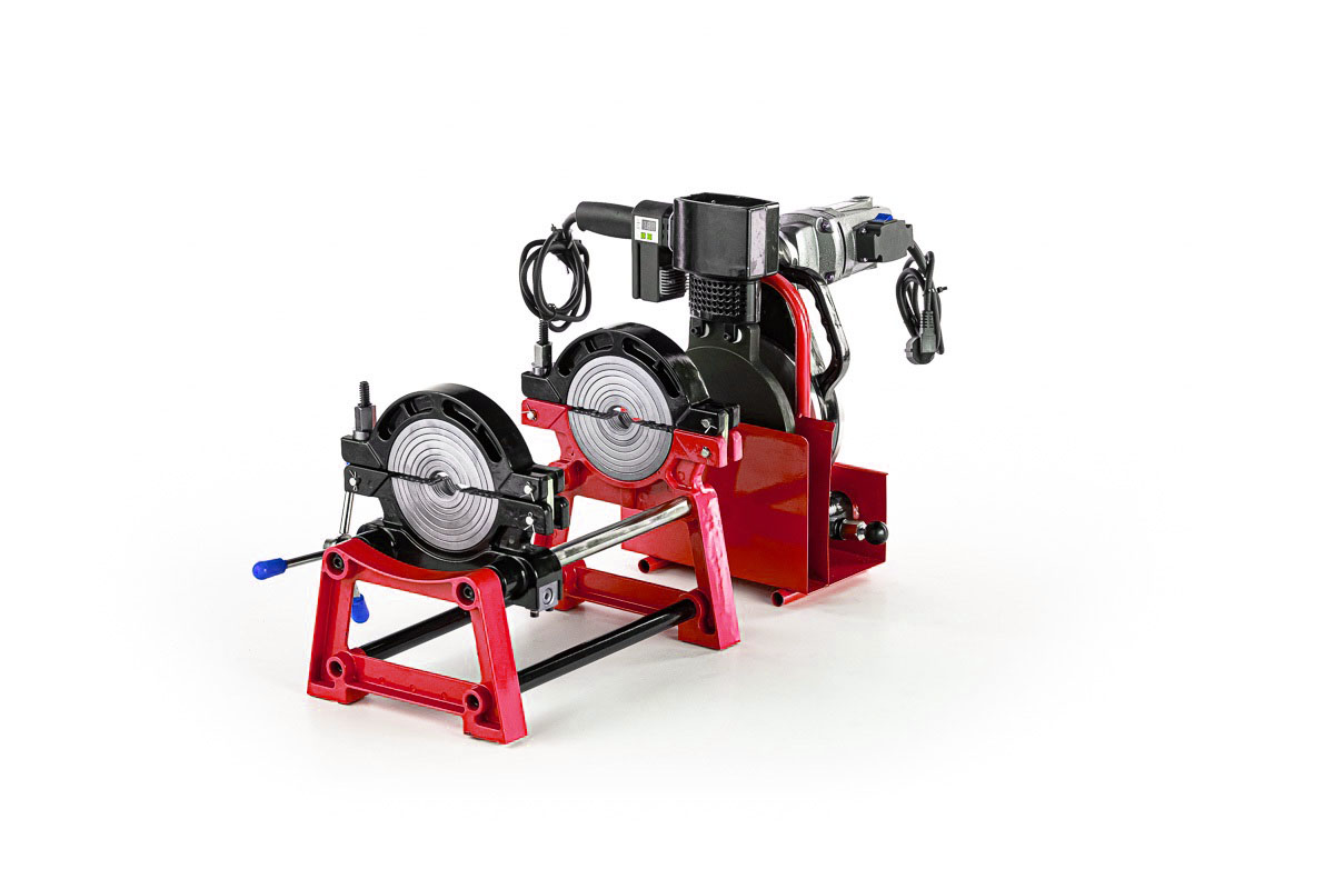 Стыковая сварочная машина RED-160V2 для сварки труб из полиэтилена, полипропилена, ПВДФ и других полимеров диаметром 40–160 мм. Центратор с двумя откидными зажимами, тефлоновый нагреватель с электронным терморегулятором, торцеватель с электроприводом, питание 220 В. Лёгкий и компактный китайский аппарат для работы в колодцах, траншеях и на высоте.